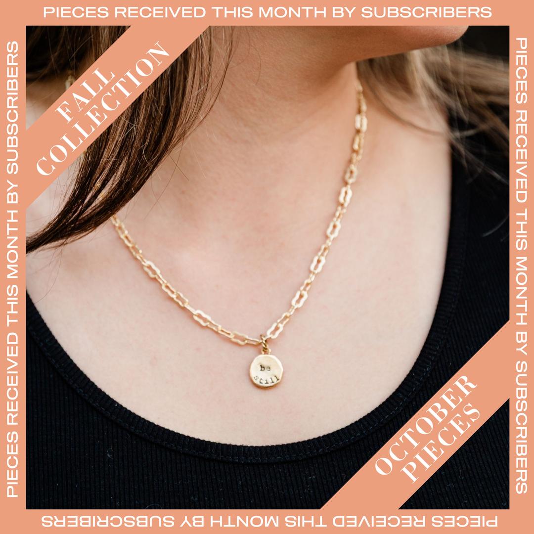 Our subscription is designed to help you feel connected to truth; empowered to walk in the promises of God; and hopeful for the future. Each month, you receive new jewelry pieces that reflect what God is speaking over you and our community. By wearing them, you keep God’s promises close to your heart, empowering you to face life’s challenges with faith and confidence. Plus, as part of our community, you’ll find support and encouragement from like-minded women who share your journey.