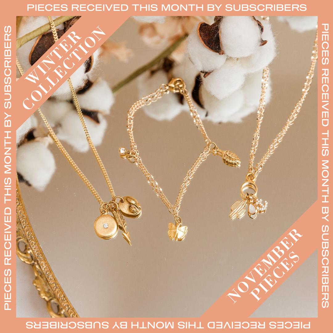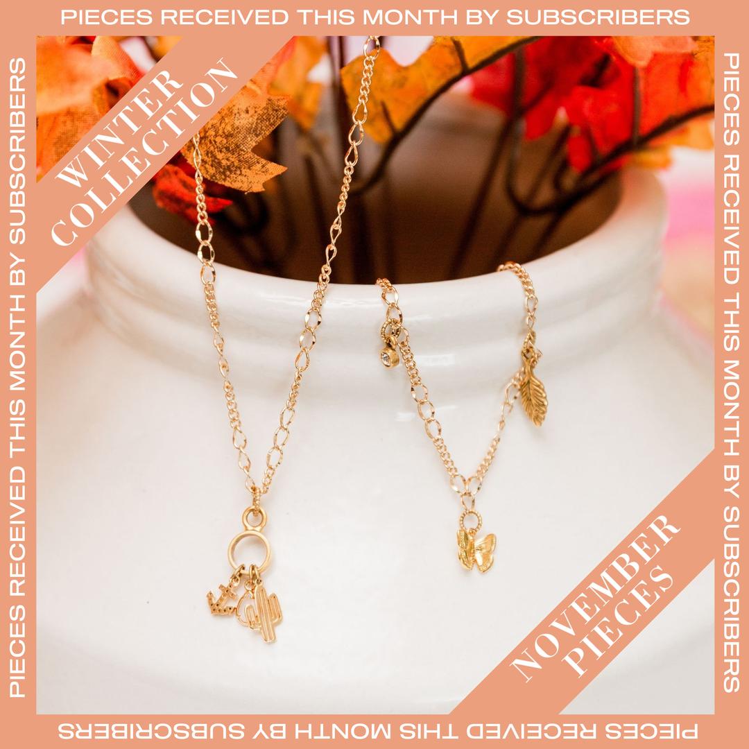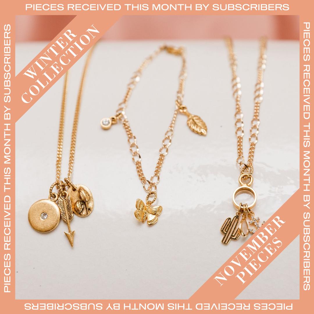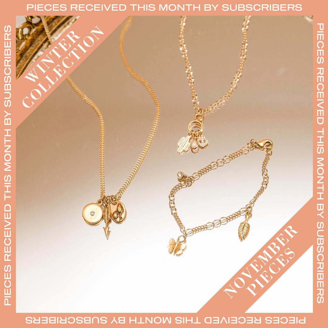 Each month you'll receive at least two gorgeous pieces These pieces will include bracelets, necklaces, and earrings all designed to be worn together, creating a stunning ensemble